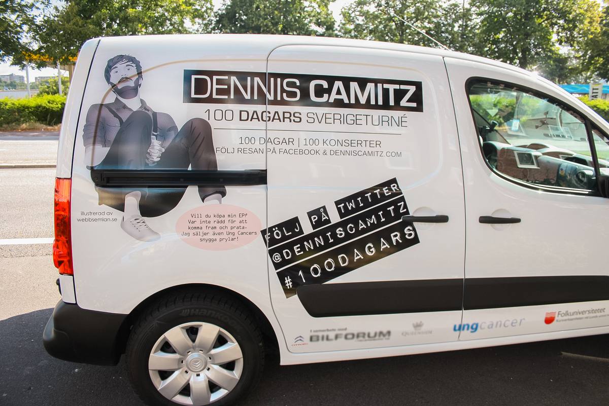 Uppdraget gick ut på att designa och illustrera ett porträtt av Dennis i Adobe Illustrator för att ha denna på sin turnébil under 100 dagar. Illustrationen användes även på hans affischer runt om i Sverige.